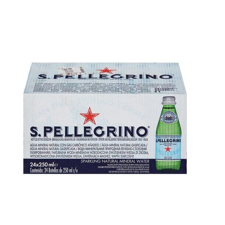 Вода минеральная S.Pellegrino газированная 0,25 л (24 штуки в упаковке) — это натуральная лечебно-столовая магниево-кальциевая минеральная вода, которая является одной из самых известных в мире и пользуется невероятным успехом среди всех, кто выбирает для себя все самое лучшее. Кристальная чистота, уникальный бактериологический и химический состав и безупречный вкус покорили многих гурманов и ценителей. S.Pellegrino — роскошный вариант для сопровождения приемов пищи или бокала сухого вина, а также для ежедневного утоления жажды и пополнения водного баланса организма. Игристые пузырьки газа, мягкий, слегка солоноватый вкус, прекрасно освежает и подчеркивает изысканные нотки великолепных блюд. Недаром вода S.Pellegrino пришлась по вкусу великим кулинарам и профессиональным сомелье.Минеральная вода S.Pellegrino зарождается в слоях земной поверхности, на глубине более чем 500 метров. Естественный контакт с горными породами обогащает ее большим количеством необходимых минералов и наделяет особенным, не сравнимым с другими водами вкусом.Символ итальянского стиля S.Pellegrino уже более века, с 1899 года, является всемирно известным напитком, ставшим синонимом высочайшего качества и верным спутником жизни для тех, кто стремится к качественной и полезной воде.Регулярное употребление минеральной воды оказывает благотворное влияние на организм, способствует улучшению самочувствия, выводит шлаки и токсины.Симпатичная стеклянная бутылка идеально сохраняет свежесть напитка и гармонично смотрится на праздничном и фуршетном столе. Наслаждайтесь S.Pellegrino дома, в офисе и в любом другом месте, где бы вы ни находились.Состав: химический состав:Кальций (Са) 181,0.Хлорид (Cl -) 57,5.Бикарбонат (HCO 3) 239,0.Фтор (Fl) 0,5.Литий (Li) 0,2.Магний (Mg) 53,5.Нитраты (NO 3) 2,2.Калий (К) 2,5.Кремния (SiO 2) 7,5. Натрий (Na) 36,1. Стронций (Sr 2) 3,2. Сульфаты (SO) 459,0. TDS 960 Кислотность (pH): 5.5 — 6.2 (на рынке 6.5 — 8.5). Объем: 0,25 литра Тип упаковки: стеклянная бутылка Условия хранения: хранить в сухом, прохладном месте при t от 2’C до +40’C. Беречь от воздействия прямого солнечного света. Страна-производитель: Италия